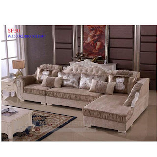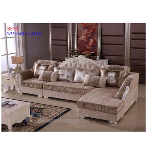 - Bộ ghế sofa góc cao cấp bọc nỉ kết hợp gỗ sơn trang trí