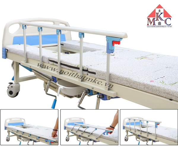 - Hai bên lan can của giường bệnh có thể gấp gọn đơn giản chỉ bằng 1 thao tác.